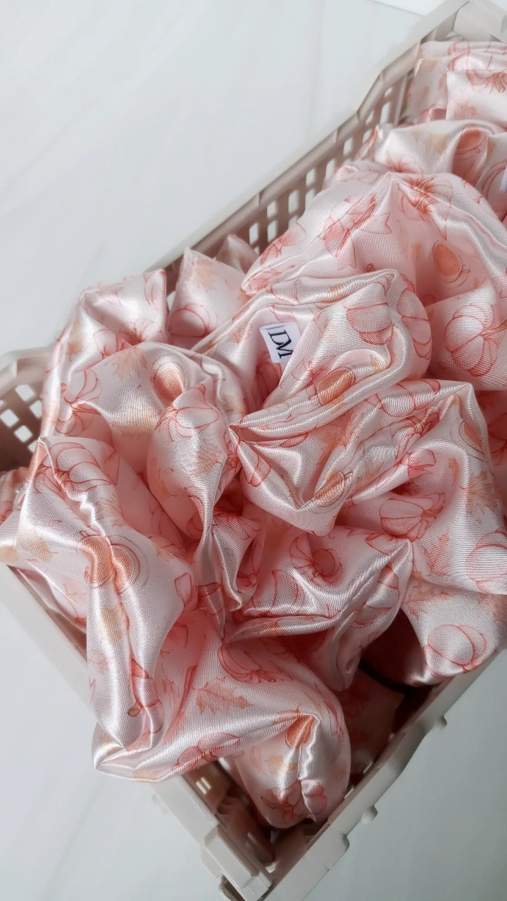 Beautiful satin hair scrunchie in our prettiest peachy fall print.